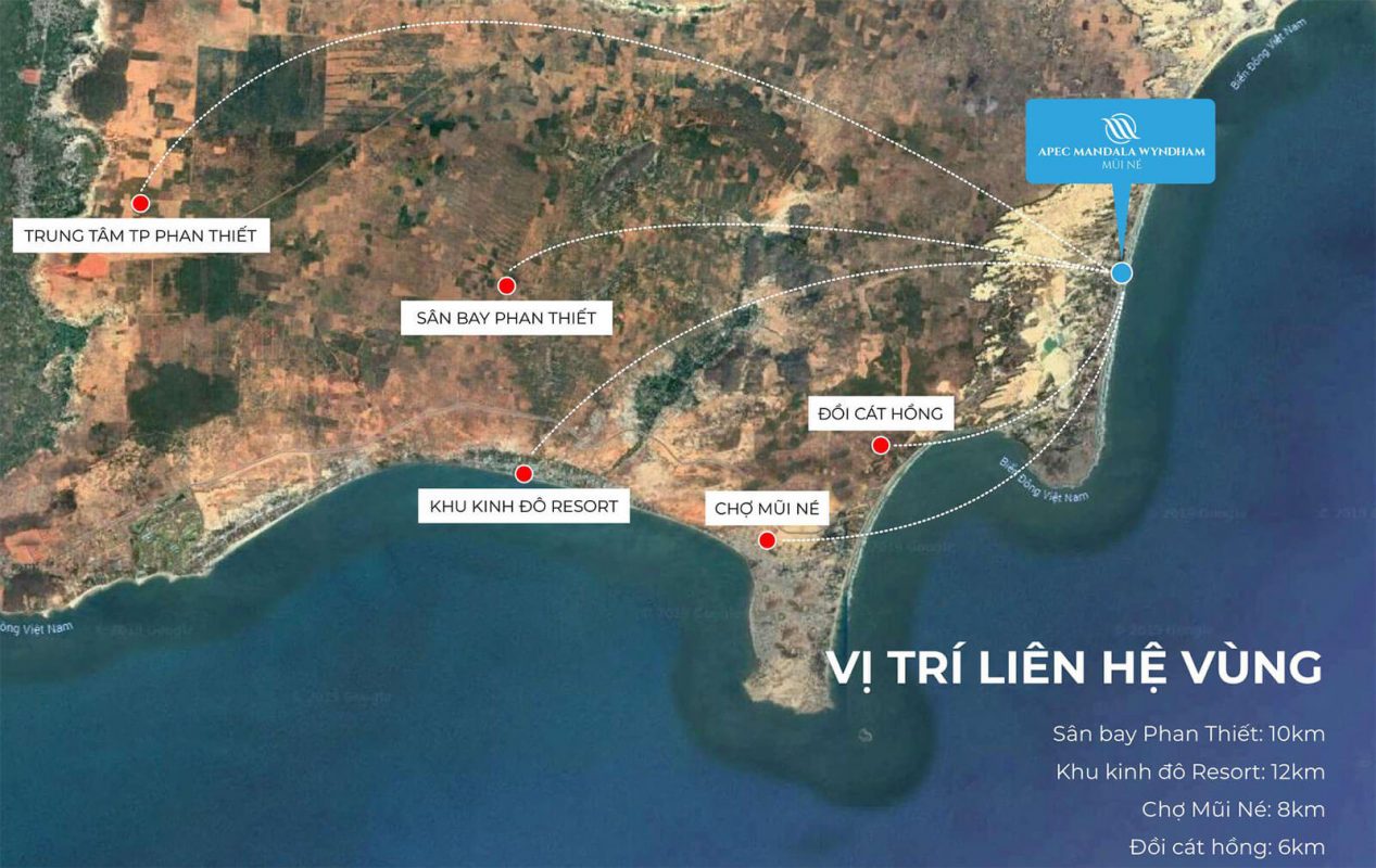 Dự án Apec Mandala được tọa lạc trên trục đường DT716, xã Hòa Thắng, thị trấn Mũi Né, TP Phan Thiết, tỉnh Bình Thuận. Nơi đây có địa thế “tựa sơn hướng thủy”, tức là lưng tựa đồi cát, mặt hướng biển và đặc biệt còn nằm trên cung đường được bình chọn đẹp nhất tại Mũi Né.