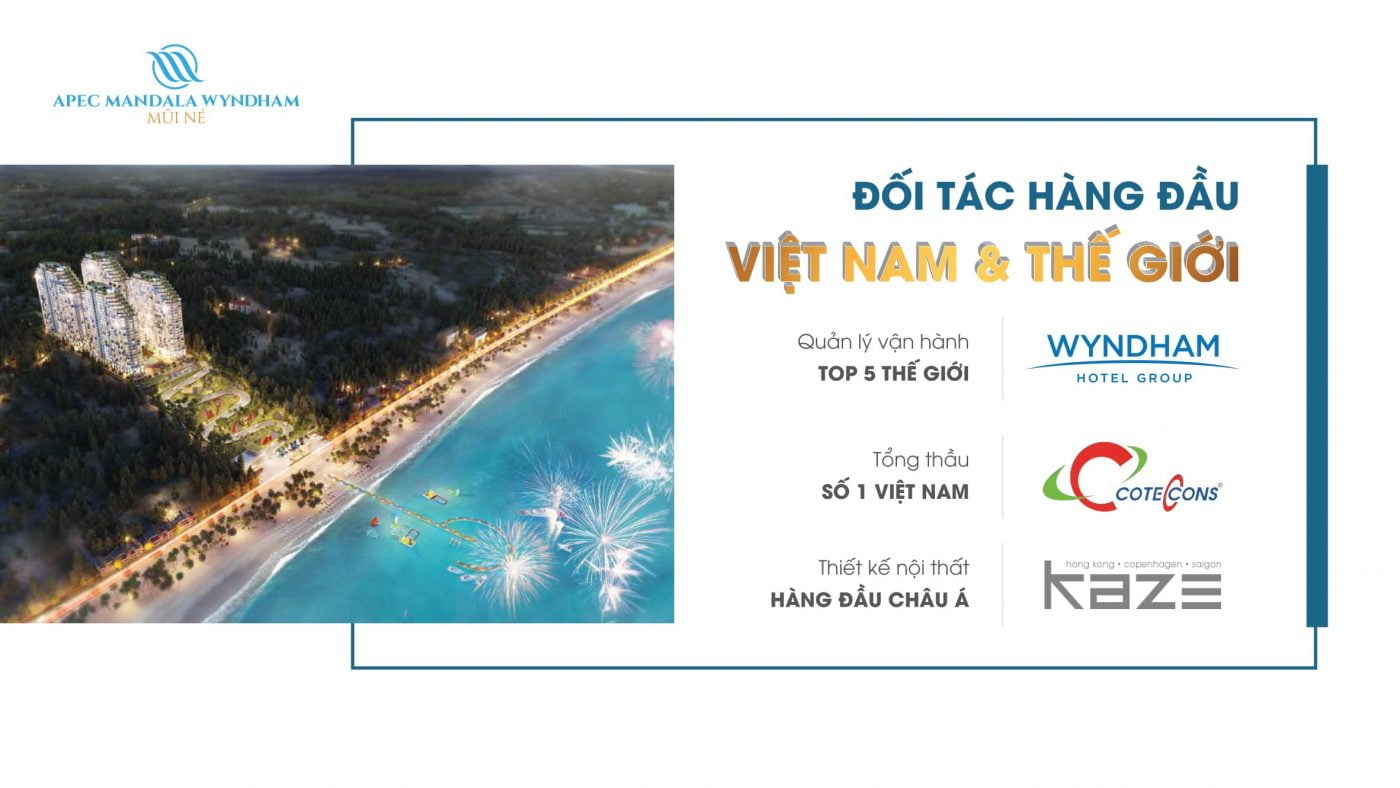 Apec Mandala Mũi Né được đầu tư bởi tập đoàn APEC. Đây chính là đơn vị thuộc top 10 nhà phát triển BĐS nghỉ dưỡng tại Việt Nam. Bên cạnh đó, dự án còn được vận hành bởi Wyndham Hotel Group – thương hiệu vận hành lớn bậc nhất thế giới. Không còn lý do gì có thể ngăn cản Apec Mandala Mũi Né trở thành siêu phẩm nghỉ dưỡng đẳng cấp quốc tế dành cho các du khách.