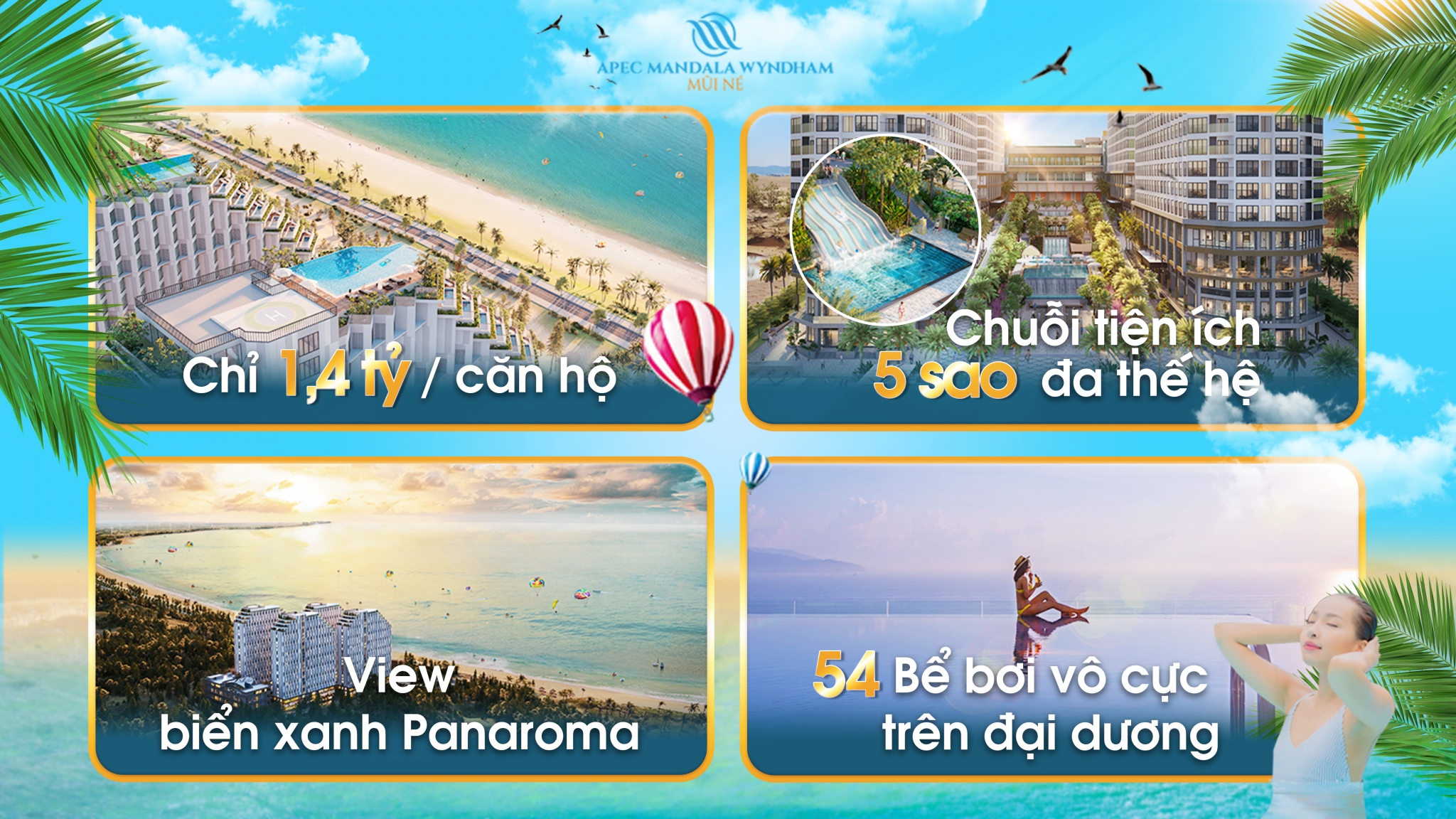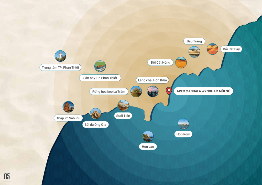 Nổi bật trên thị trường bất động sản nghỉ dưỡng đầu năm 2023, Apec Mandala Wyndham Mũi Né được mệnh danh là nơi đem đến sự tận hưởng trọn vẹn phong vị nghỉ dưỡng thiên đường cho mọi khách hàng. Dự án mang theo nguồn cảm hứng về dòng chảy lịch sử của nền văn hóa Mandala huyền bí.