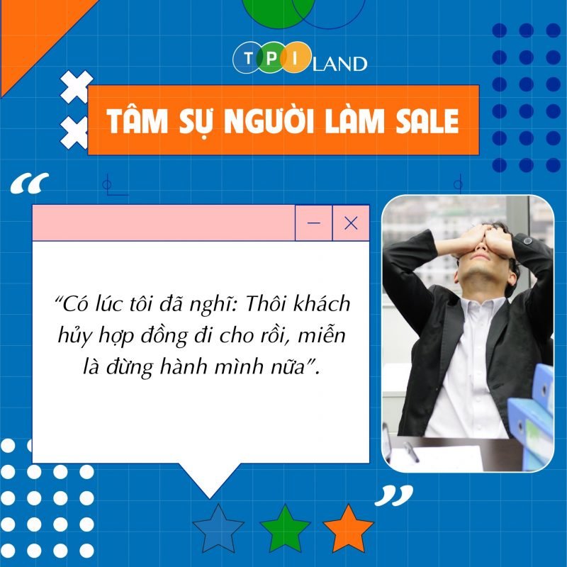 Bản thân tôi lúc đó mới vào nghề được hơn 1 năm cũng chưa có nhiều kinh nghiệm nên áp lực quá lớn khi khách liên tục thay đổi điều khoản và có lúc tưởng như không thể thương thảo, nó làm cho tôi có cảm giác cạn kiệt sức lực và liên tục căng thẳng trong vòng 2 tháng của hy vọng rồi thất vọng căng như dây đàn. Thậm chí có lúc tôi đã nghĩ: “Thôi khách hủy hợp đồng đi cho rồi, miễn là đừng hành mình nữa”.