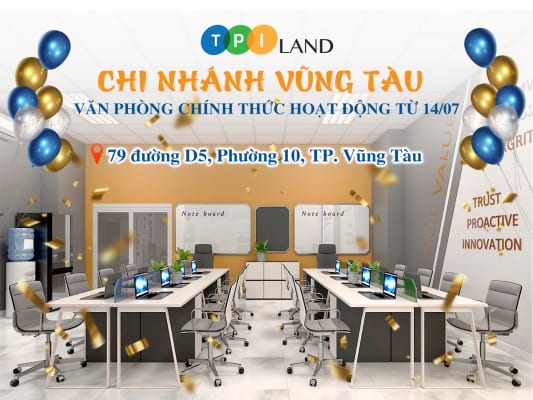 Ngày 14/07/2021 đánh dấu cột mốc mới trong bước phát triển của TPI Land khi Văn phòng chi nhánh Vũng Tàu chính thức đi vào hoạt động. Văn phòng giao dịch của TPI Land Vũng Tàu tọa lạc ngay cửa ngõ dự án, vị trí này giúp khách hàng dễ dàng tìm kiếm và nhận được hỗ trợ nhanh nhất từ TPI Land.